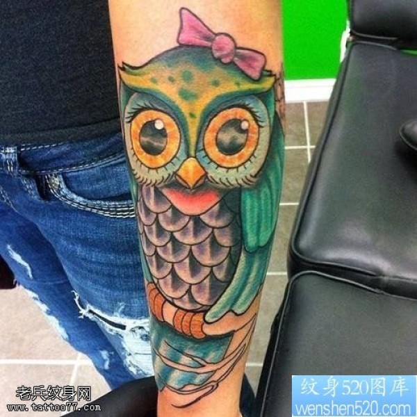 手臂彩色猫头鹰纹身图案_臂部纹身图案大全_纹身图吧