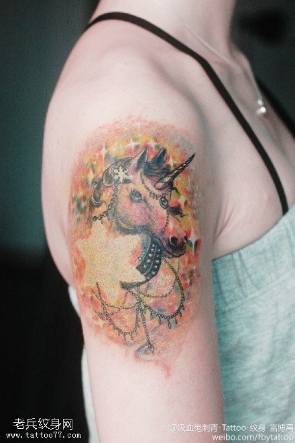 一款手臂彩色独角兽纹身图案_臂部纹身图案大全_纹身图吧