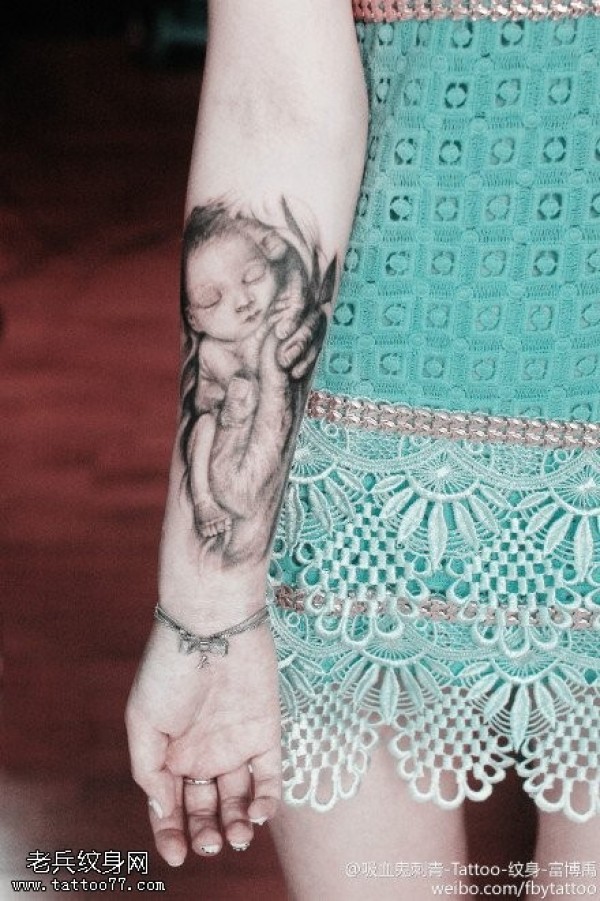 一款很有爱的手臂手抱小孩纹身图片_臂部纹身图案大全_纹身图吧