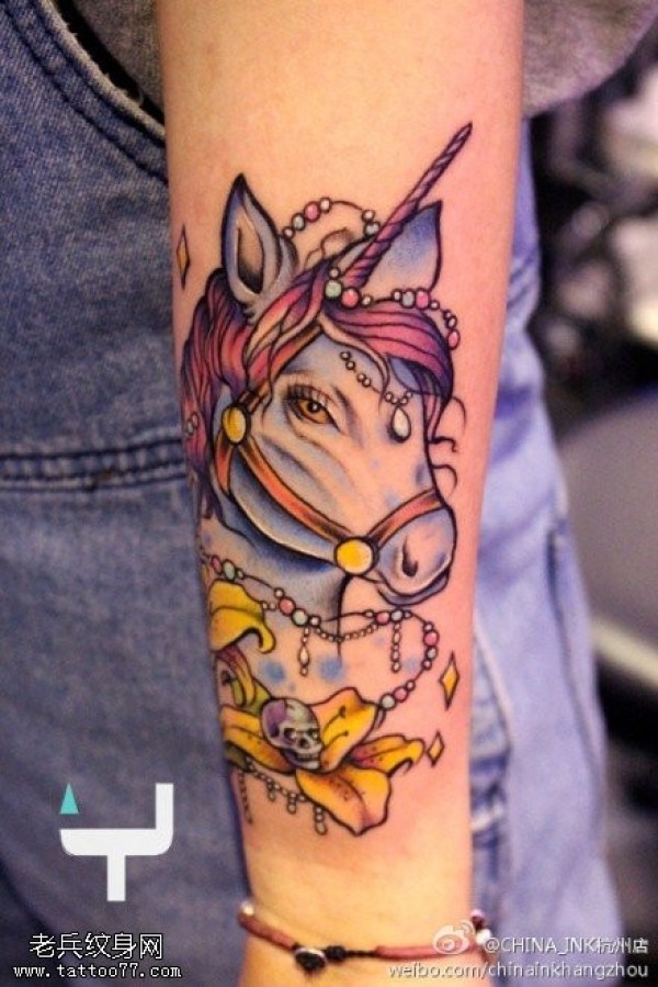 手臂彩色独角兽纹身图案_臂部纹身图案大全_纹身图吧