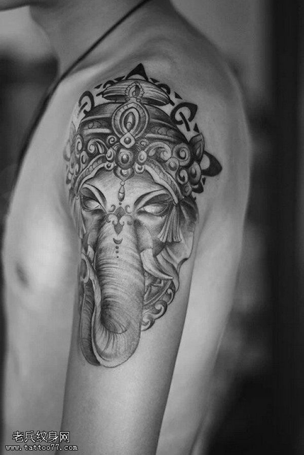 一款手臂黑灰象神纹身图案_臂部纹身图案大全_纹身图吧