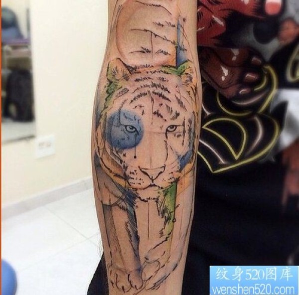 纹身馆推荐一款手臂水墨老虎纹身图案_臂部纹身图案大全_纹身图吧