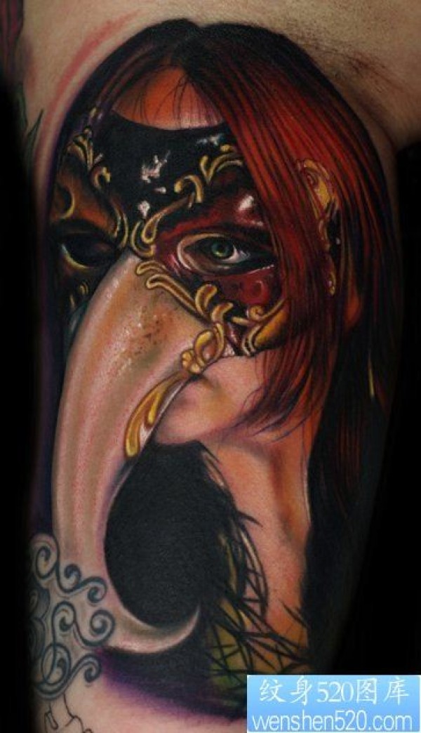 手臂彩色大嘴怪女郎纹身图案_臂部纹身图案大全_纹身图吧