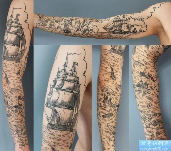 一款满手臂帆船纹身图案_臂部纹身图案大全_纹身图吧