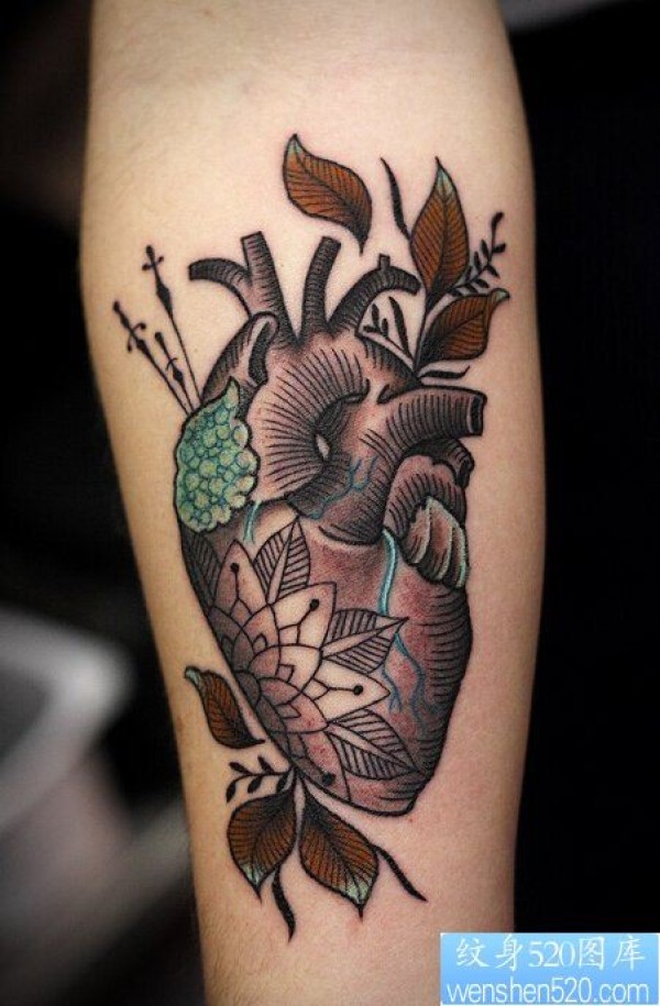 一款手臂黑灰素描心脏纹身图案_臂部纹身图案大全_纹身图吧