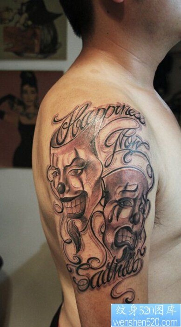 一款手臂哭笑面具纹身图案_臂部纹身图案大全_纹身图吧