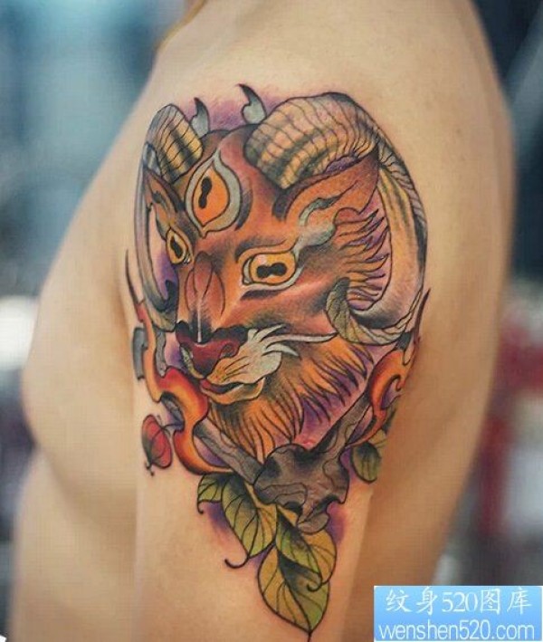 手臂彩色三眼羊纹身图案_臂部纹身图案大全_纹身图吧