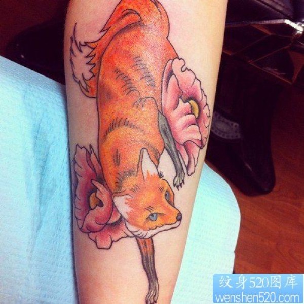 纹身推荐一款手臂彩色狐狸纹身图案_臂部纹身图案大全_纹身图吧