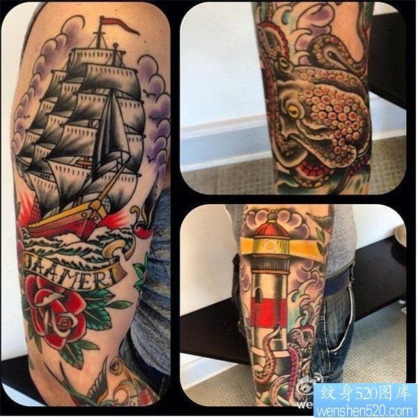 手臂彩色帆船纹身图案_臂部纹身图案大全_纹身图吧