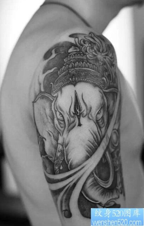 一款个性大臂象神纹身图案_臂部纹身图案大全_纹身图吧
