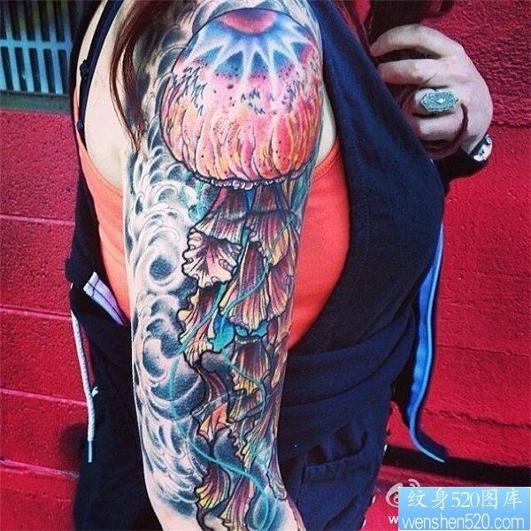 手臂彩色水母纹身图案_臂部纹身图案大全_纹身图吧