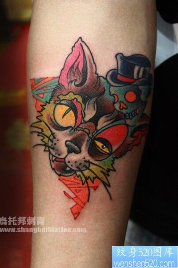 手臂彩色猫咪纹身图案_臂部纹身图案大全_纹身图吧