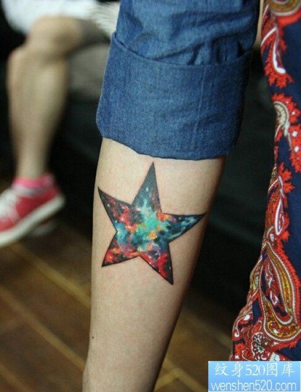 手臂星空五角星文身作品_臂部纹身图案大全_纹身图吧