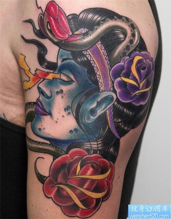 手臂个性彩色女郎纹身图案_臂部纹身图案大全_纹身图吧