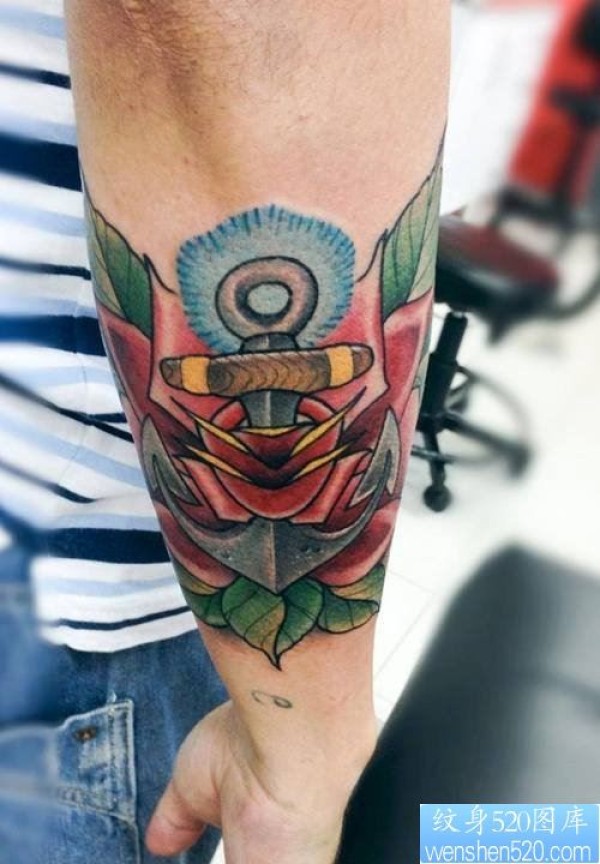 一幅手臂彩色船锚纹身作品_臂部纹身图案大全_纹身图吧