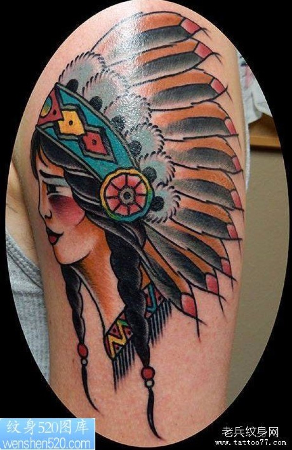 手臂彩色女郎纹身作品_臂部纹身图案大全_纹身图吧
