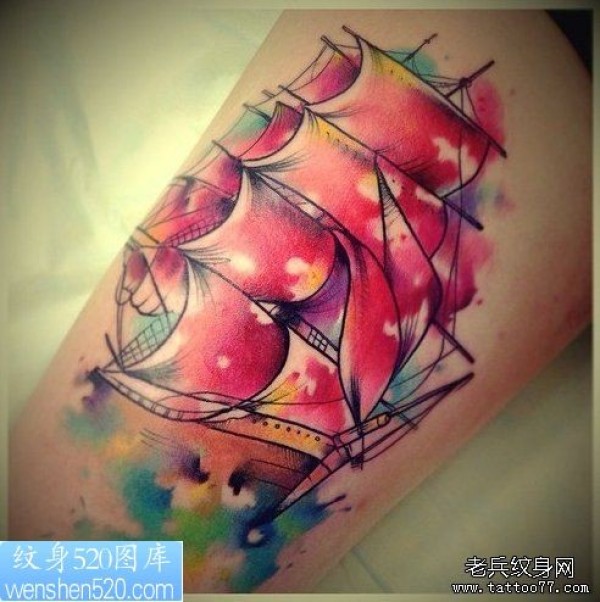一幅手臂彩色帆船纹身作品_臂部纹身图案大全_纹身图吧