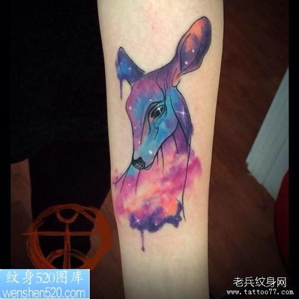 一幅手臂彩色星空鹿纹身作品_臂部纹身图案大全_纹身图吧
