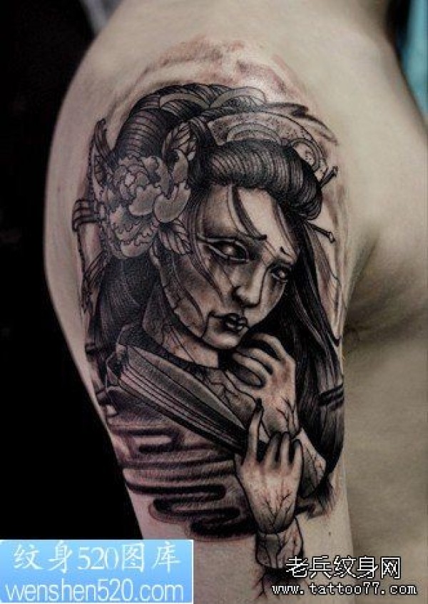 一幅大臂艺妓纹身作品_臂部纹身图案大全_纹身图吧