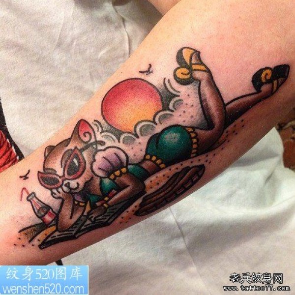 手臂彩色猫咪纹身作品_臂部纹身图案大全_纹身图吧