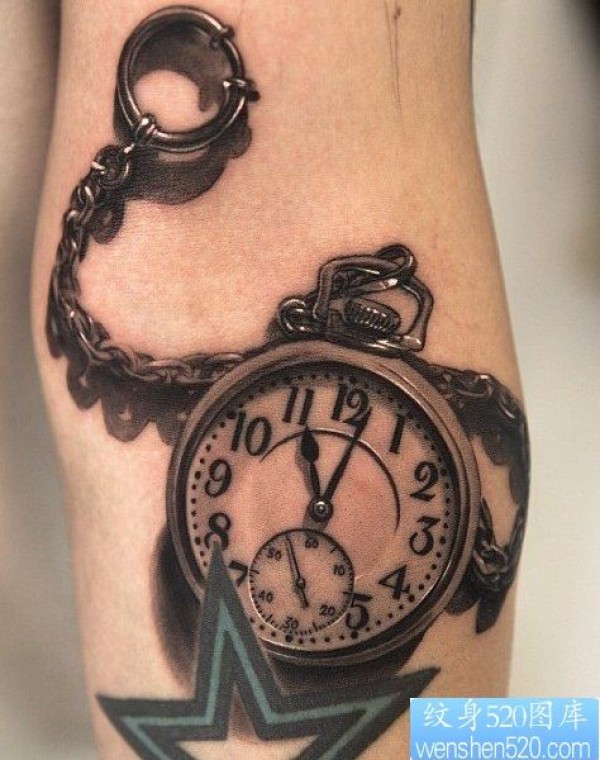 一幅手臂时钟纹身作品_臂部纹身图案大全_纹身图吧