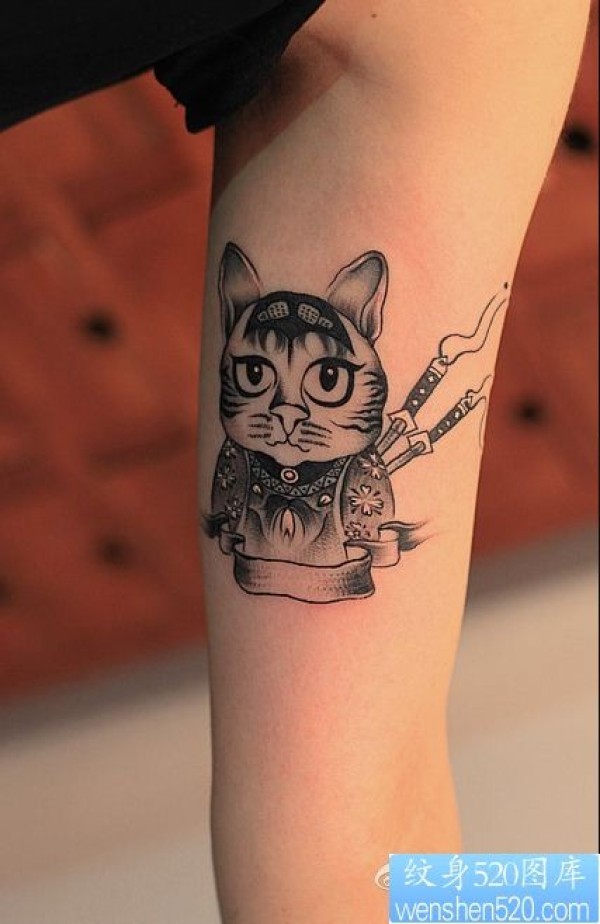 手臂武士猫咪纹身图片由纹身520图库推荐_臂部纹身图案大全_纹身图吧