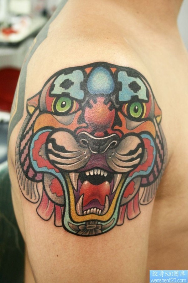 一幅手臂彩色老虎纹身图片由纹身520图库推荐_臂部纹身图案大全_纹身图吧