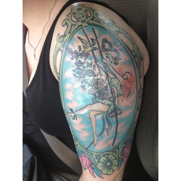 男士手臂上一款彩色纹身_臂部纹身图案大全_纹身图吧