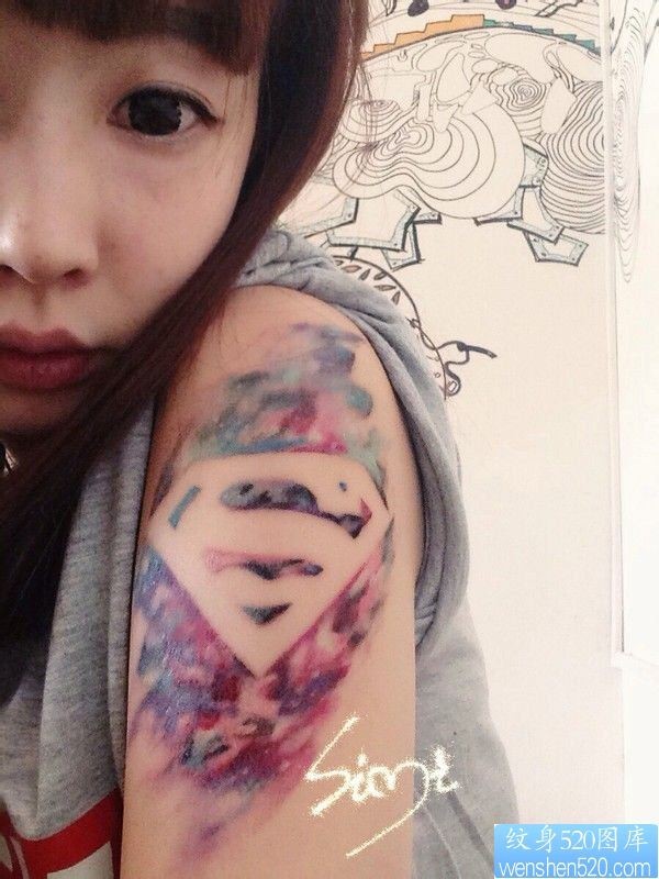 纹身520图库推荐 一幅手臂超人标志纹身图片_臂部纹身图案大全_纹身图吧