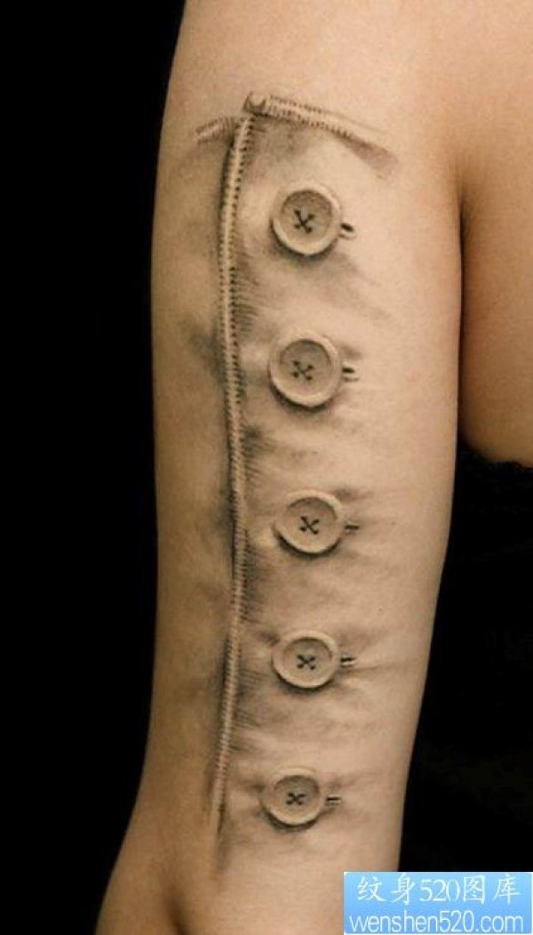 欣赏大臂上一幅逼真的纽扣纹身图片_臂部纹身图案大全_纹身图吧
