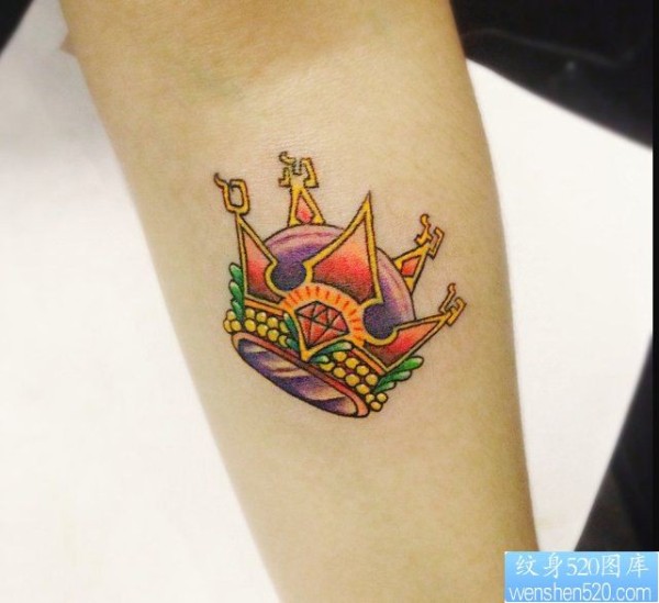 最好的纹身馆推荐一幅手臂彩色小皇冠纹身图片_臂部纹身图案大全_纹身图吧