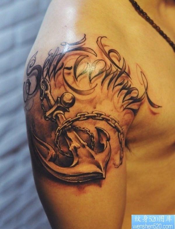 大臂黑灰船锚纹身图片由纹身520图库推荐_臂部纹身图案大全_纹身图吧