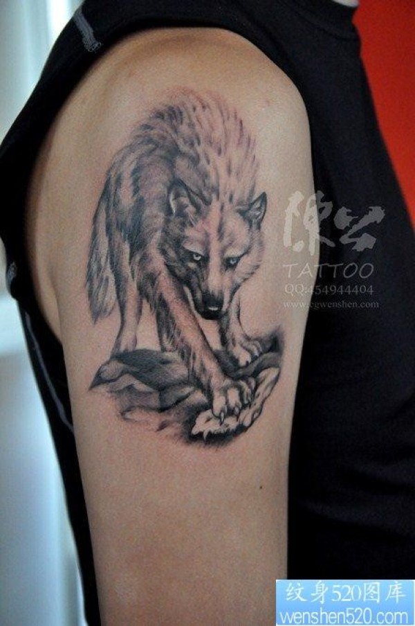 一幅大臂狼纹身图片由纹身520图库推荐_臂部纹身图案大全_纹身图吧