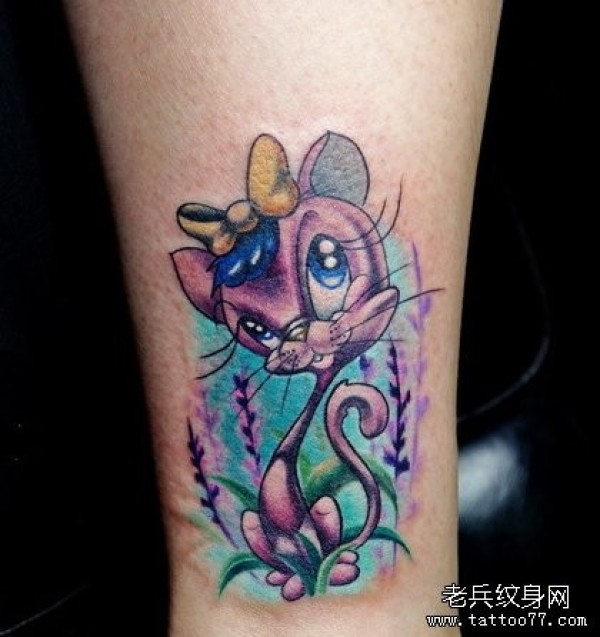 纹身520图库推荐一幅手臂彩色猫咪文身图片_臂部纹身图案大全_纹身图吧