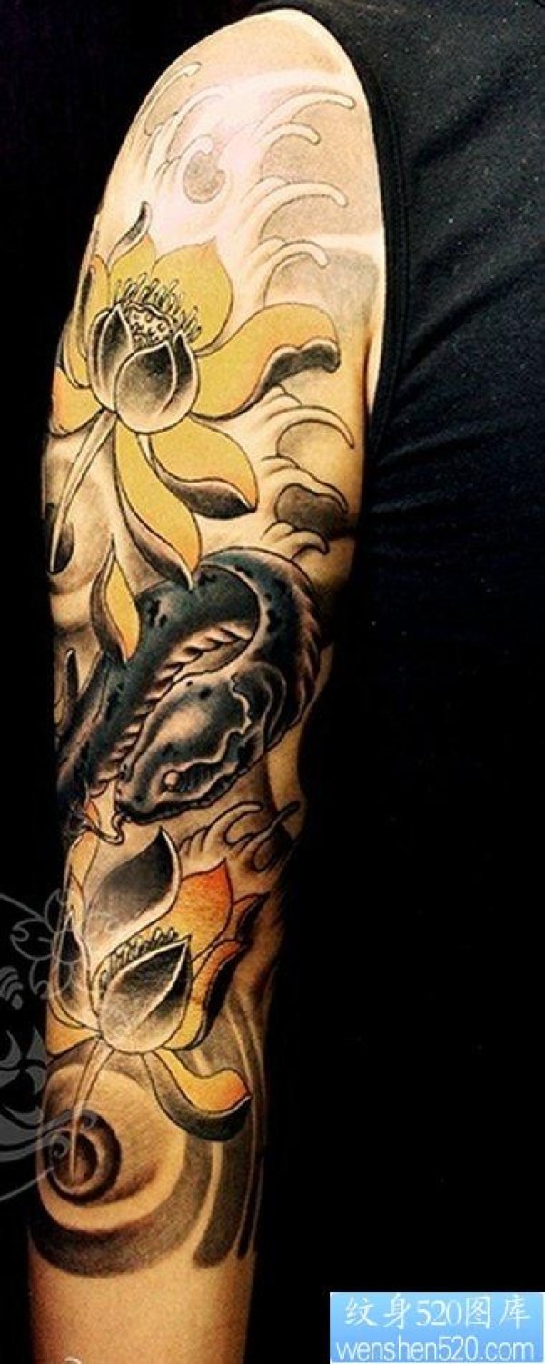 一幅手臂莲花蛇文身图片由纹身520图库推荐_臂部纹身图案大全_纹身图吧