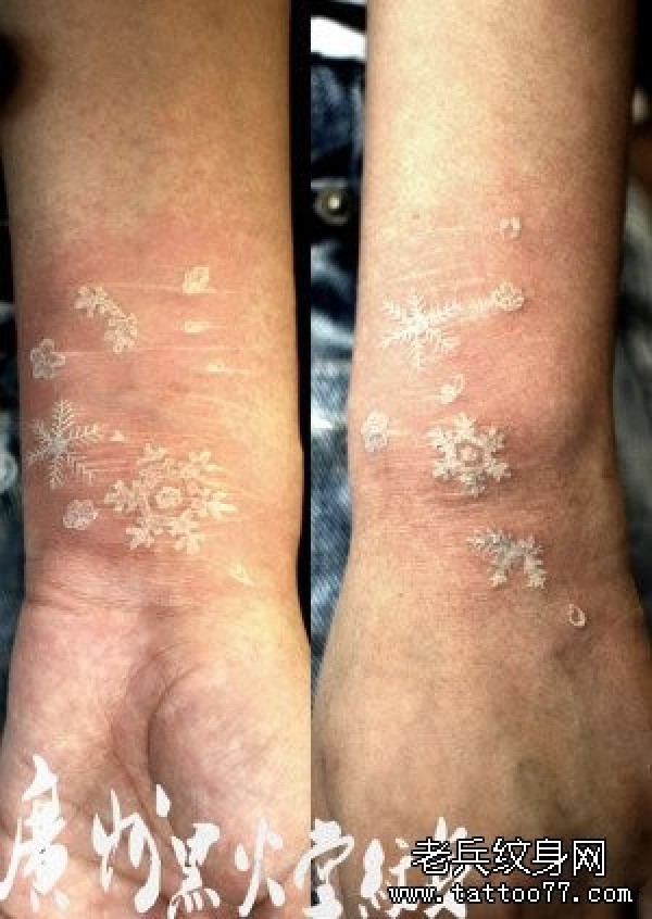 手臂时尚精美的白色雪花纹身图片_臂部纹身图案大全_纹身图吧