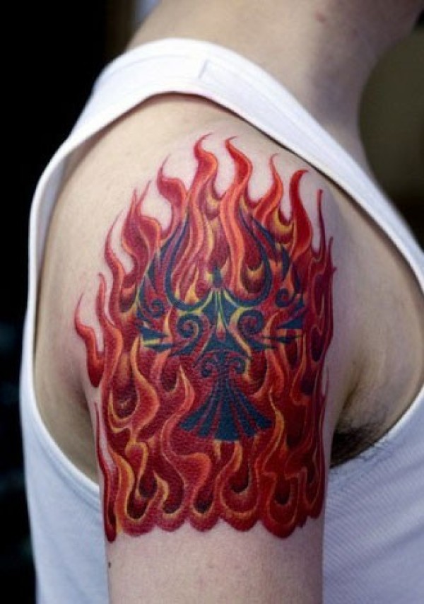 手臂时尚唯美的火焰纹身图片_臂部纹身图案大全_纹身图吧