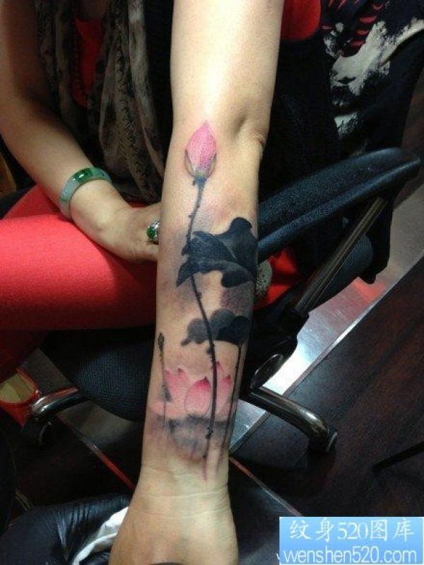 女人手臂时尚唯美的水墨莲花纹身图片_臂部纹身图案大全_纹身图吧