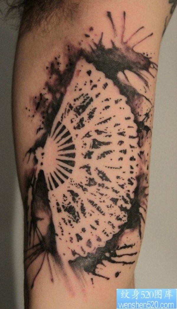 手臂时尚经典一幅水墨扇子纹身图片_臂部纹身图案大全_纹身图吧