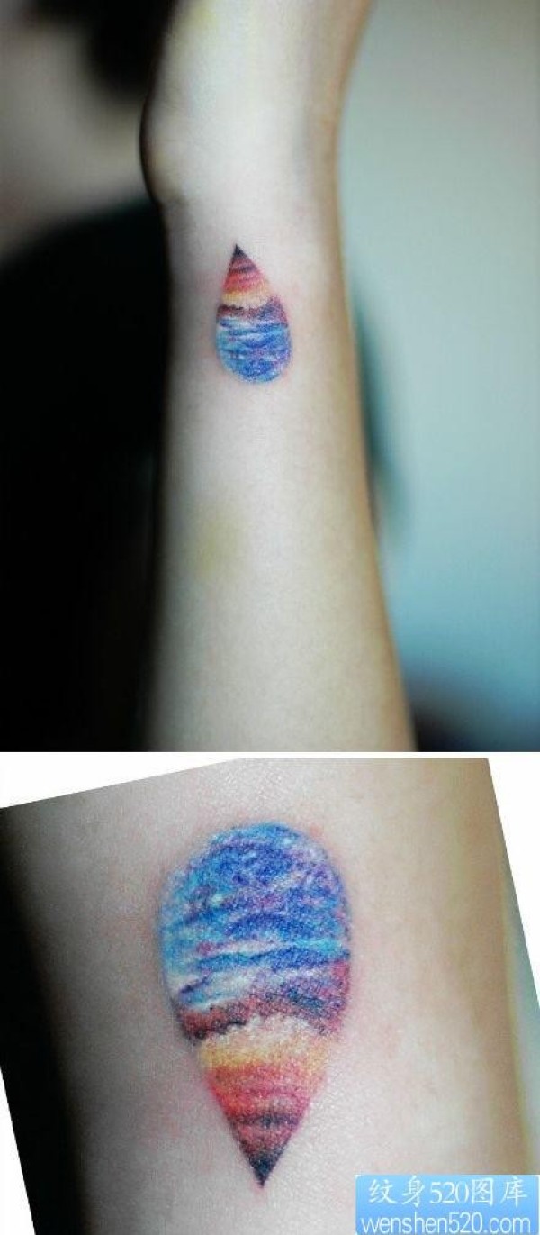 女人手臂一幅潮流另类的水滴纹身图片_臂部纹身图案大全_纹身图吧