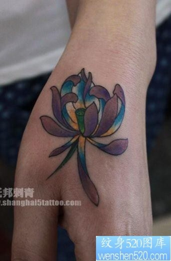 女孩子手臂一幅彩色小莲花纹身图片_臂部纹身图案大全_纹身图吧