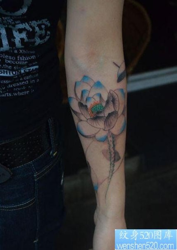 女孩子手臂潮流的水墨画莲花纹身图片_臂部纹身图案大全_纹身图吧