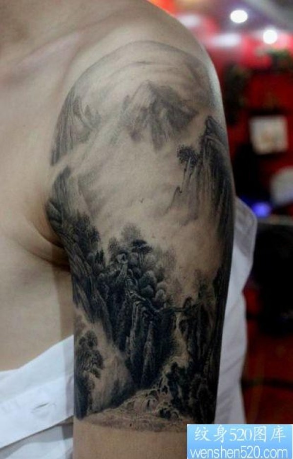 手臂经典的山水画纹身图片_臂部纹身图案大全_纹身图吧