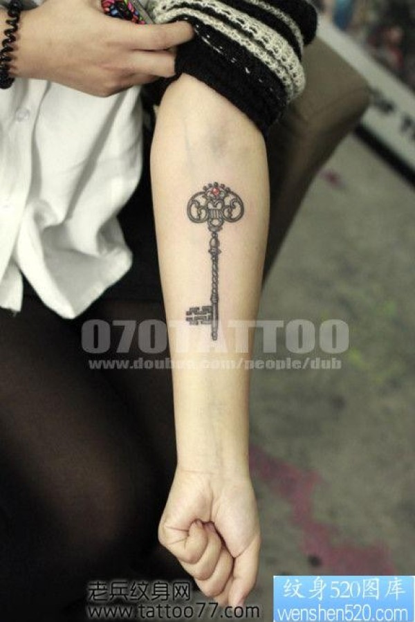 手臂经典流行的钥匙纹身图片_臂部纹身图案大全_纹身图吧