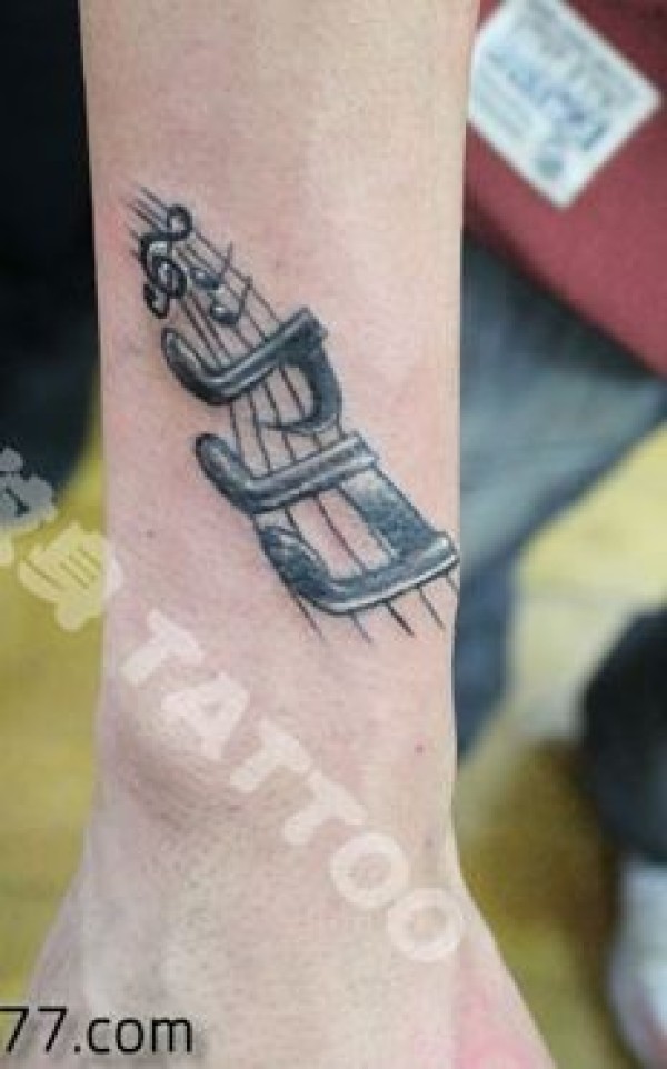 手臂潮流经典的音符纹身图片_臂部纹身图案大全_纹身图吧