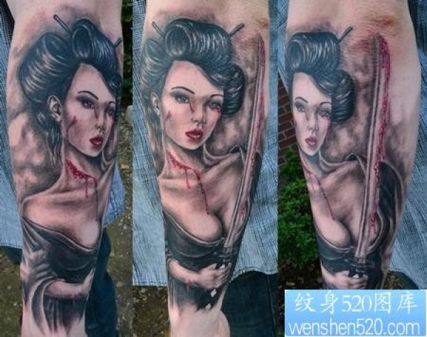 手臂日本美女武士纹身_臂部纹身图案大全_纹身图吧
