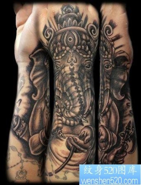 手臂黑灰象神纹身图片_臂部纹身图案大全_纹身图吧
