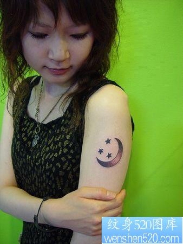 美女手臂月亮五角星纹身_臂部纹身图案大全_纹身图吧