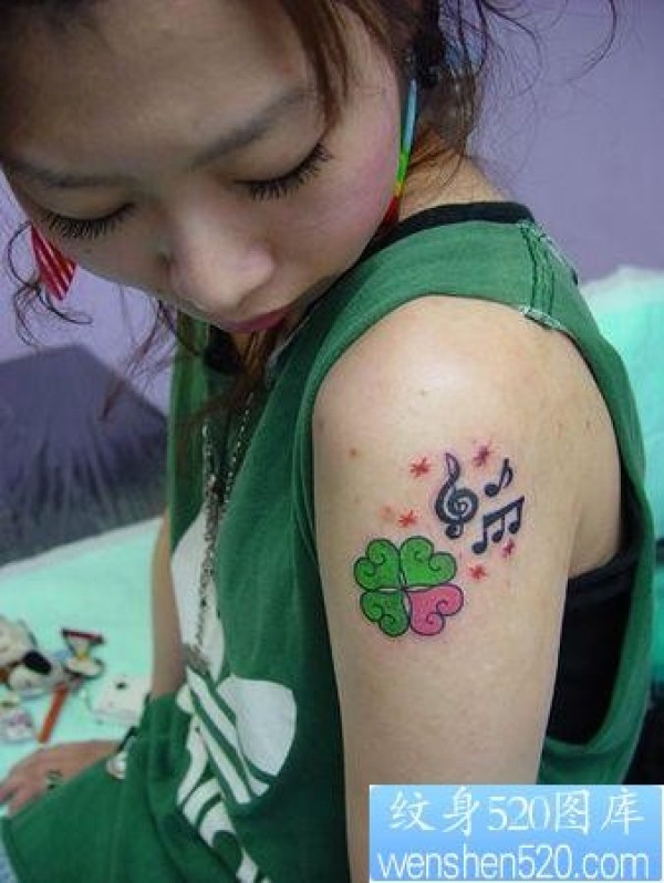 美女手臂四叶草音符纹身_臂部纹身图案大全_纹身图吧