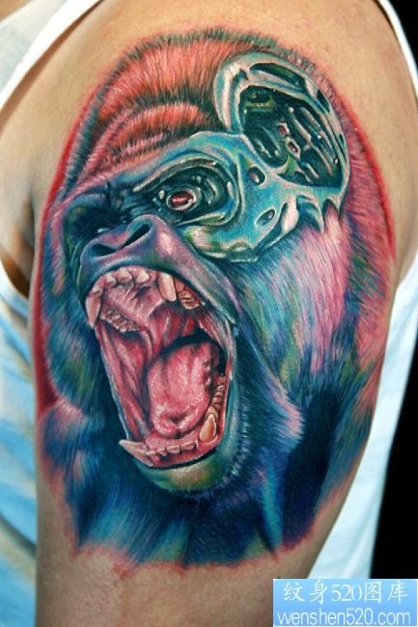 大臂纹身图片大臂猩猩纹身图片作品_臂部纹身图案大全_纹身图吧